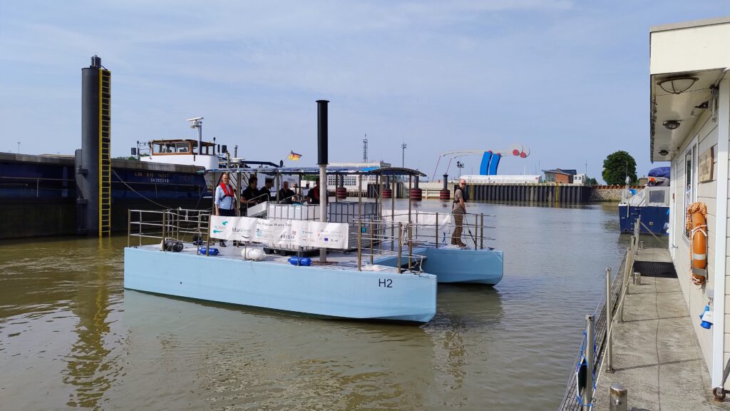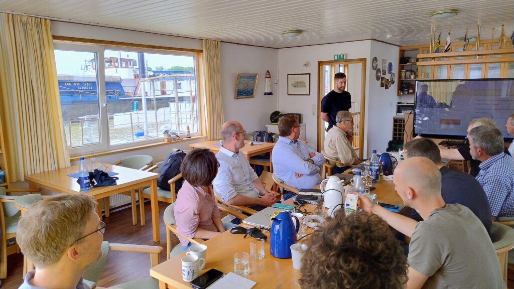 Neben spannenden Projektinhalten gab es auch eine Ausfahrt mit dem Green Water Taxi der University of Applied Sciences Emden/Leer, das jüngst mit der Infrastruktur für Tests von ausgestattet wurde. Wir sind schon gespannt auf erste Erkenntnisse und wie sich dann der mehrere Meter hohe Rotor machen wird, wenn er den jetzt noch sehr kleinen Testrotor ersetzt.